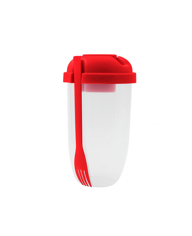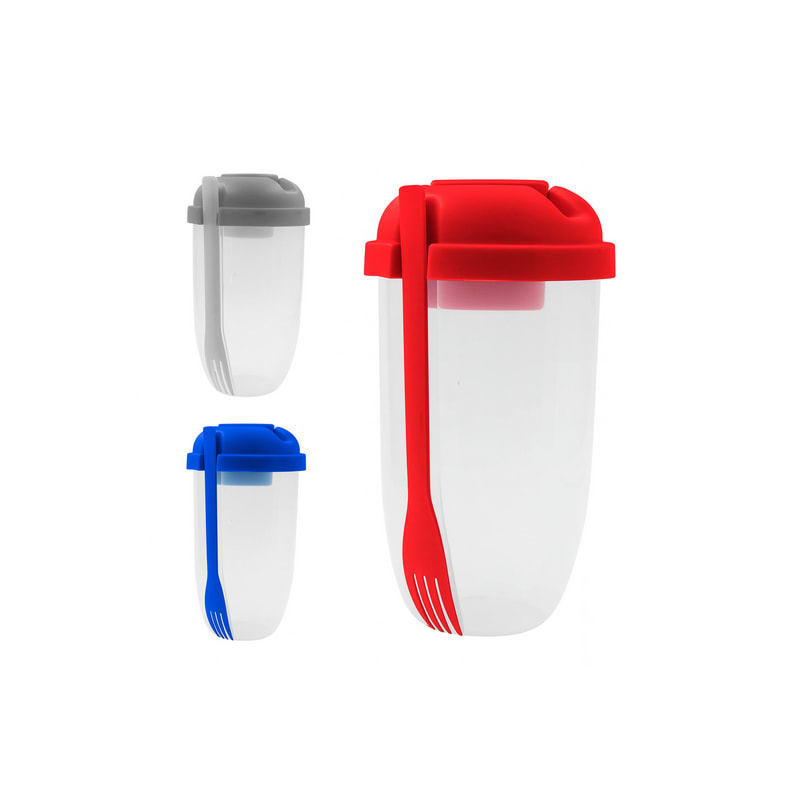 Vaso ensaladera con mini contenedor para dip, con tapa enroscable y tenedor.