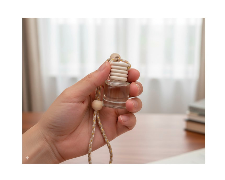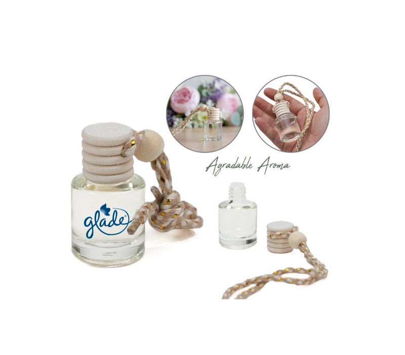 Botella difusora de vidrio de 5 ml. con fragancia; la tapa de madera se impregna desprendiendo el aroma contenido. Ideal para coches, closets o lugares pequeños. Cuenta con cinta ajustable para colgarse. Fragancia incluida. Presentación: Caja individual.
