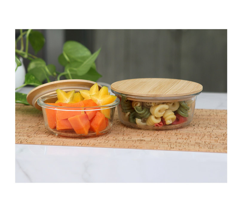 Set de 3 contenedores de 500 ml fabricados en vidrio de borosilicato con tapa y soporte de bambú. Incluye caja de cartón individual. Mantén tus alimentos siempre frescos con el sistema de cerrado hermético.