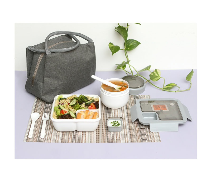 Organiza y conserva tus alimentos de manera práctica y eficiente con este juego de contenedores para alimentos, diseñado para ofrecer versatilidad y comodidad en tu día a día. Además, incluye una lonchera que mantiene tus comidas frescas por más tiempo, ideal para llevar snacks, almuerzos o bebidas. Incluye un contenedor de alimentos cuadrado con dos divisiones capacidad de 1100 ml, dos cubiertos y un recipiente pequeño para salsas o aderezos, y un contenedor más pequeño ideal para sopas o pastas de capacidad de 600 ml con un cubierto expansible Fabricados con materiales resistentes y seguros, estos contenedores son perfectos para la oficina, la escuela, picnic o cualquier actividad al aire libre. Simplifica tu rutina con este set completo que combina funcionalidad y durabilidad.