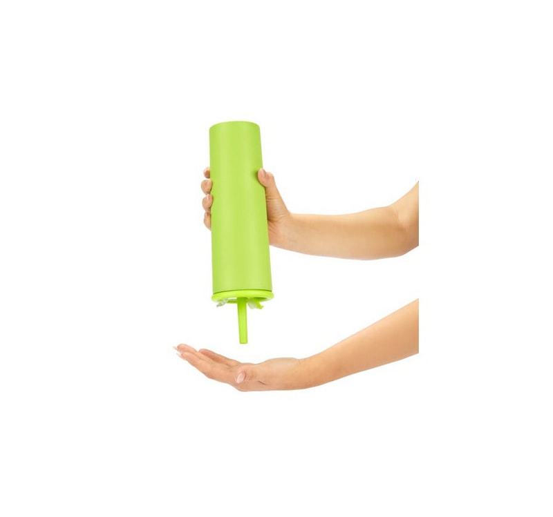 Medidas 6 x 19,5 cm. Capacidad 350 ml. Acero inoxidable tipo 201 exterior y 304 interior. Doble pared. Tapa a rosca, botón para abrir y cerrar. Lazo para sujetar en la muñeca. Base antideslizante.