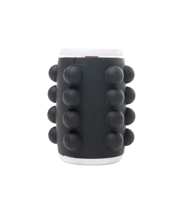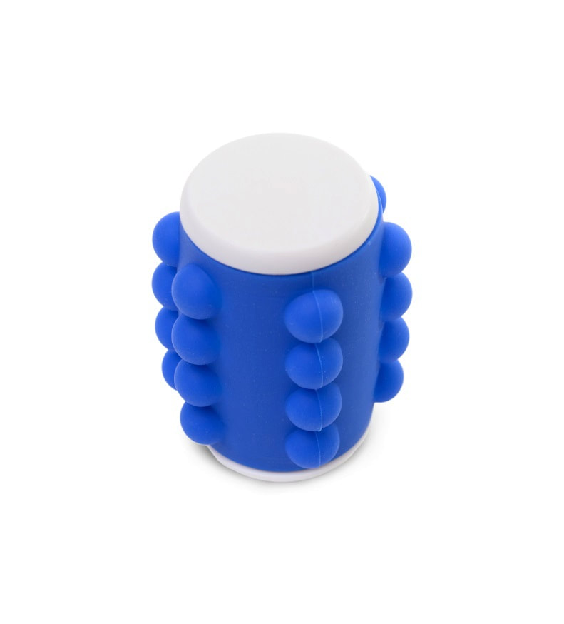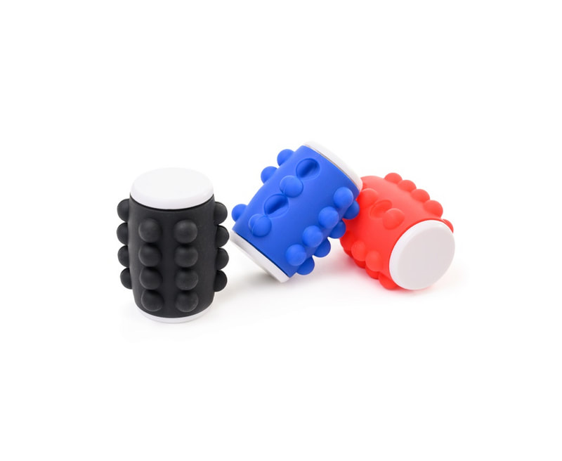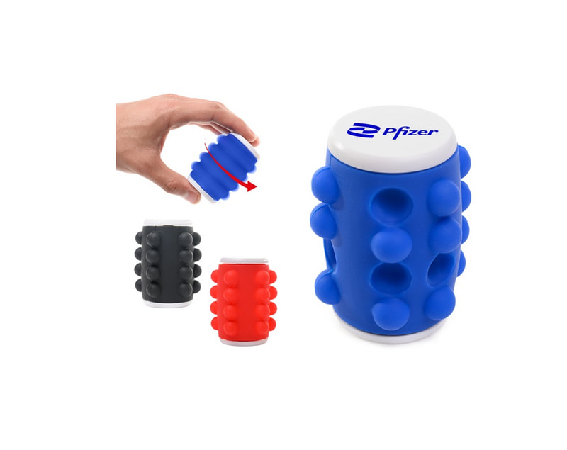 Juguete antiestrés giratorio de bolsillo push pop en forma de barril. Su diseño ergonómico facilita el agarre con una sola mano, se puede hacer girar y/o apretar las burbujas de plástico, lo que ofrece alivio para el estrés y ansiedad.