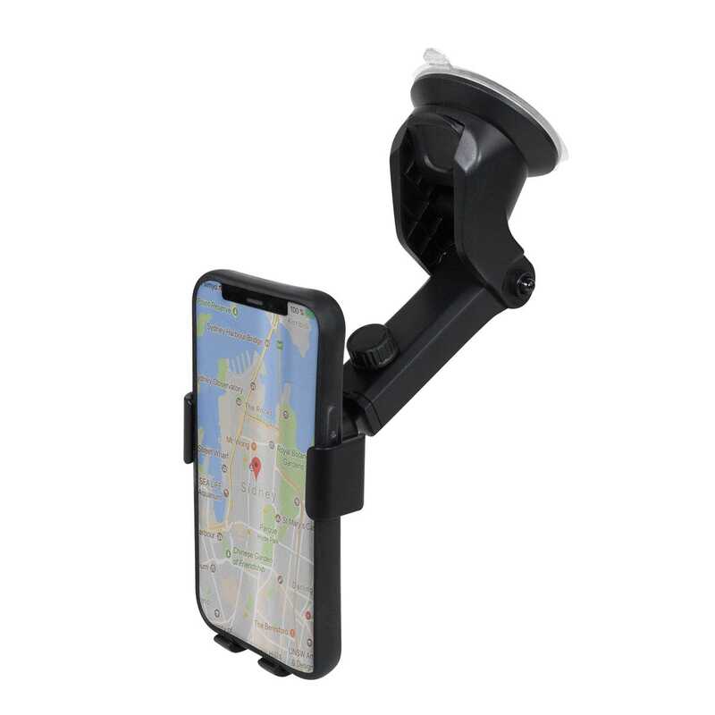Soporte para celular ajustable ideal para automóvil con cabezal de rotación 360°, cuenta con perilla para armar, rejillas ajustables con gomas antiderrapantes, abrazaderas y seguro de bloqueo con ventosa en la parte de la base para sujetar en tableros y parabrisas. Presentación: Caja en color blanco.