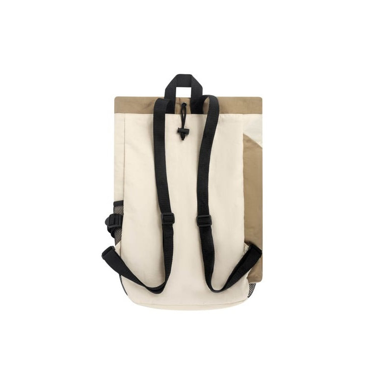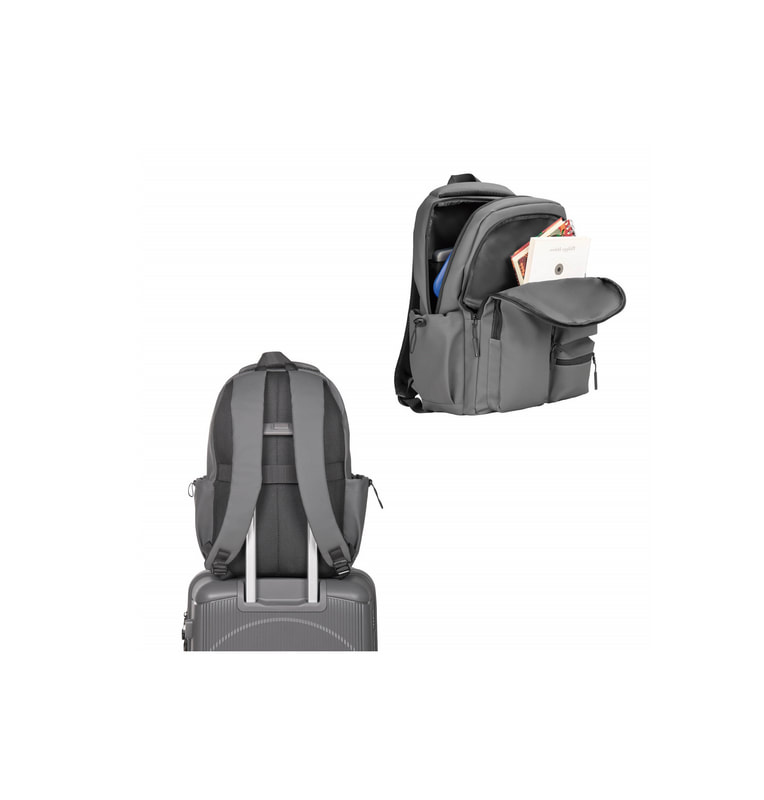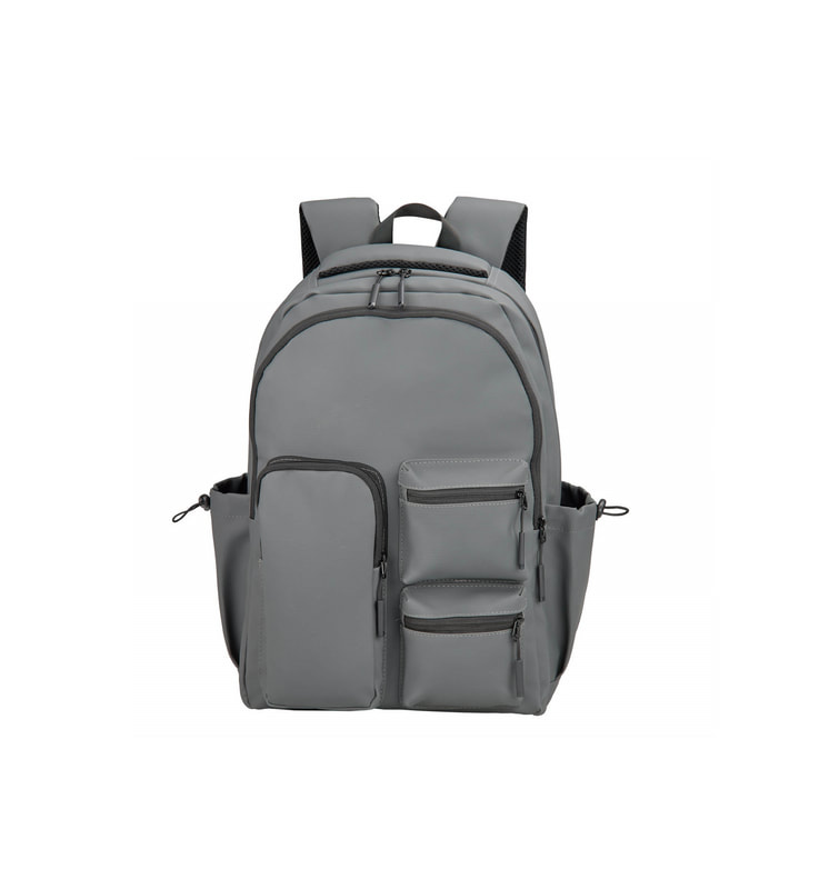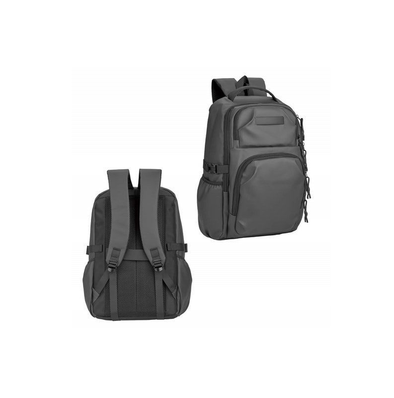 Mochila confeccionada en tejido sarga compuesto con respaldo de punto y tejido taslon rip stop, forro 210D 100% poliéster. Parte inferior: 600D con revestimiento de TPE, un bolsillo principal con cremallera, compartimento para computadora portátil, dos bolsillos frontales con cremallera y dos bolsillos laterales extensibles. Correa para espalda y hombro acolchada con espuma y malla para reducir el estrés. Correas: correas de PP 600D. Volumen: 21,5 litros.