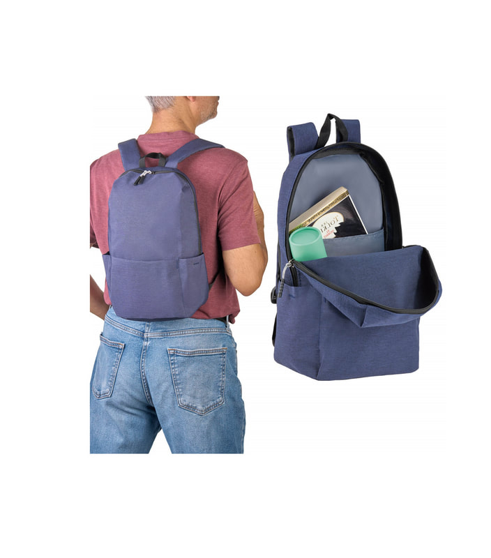c539 Mochila. Medidas 40 x 26 x 12 cm aprox. Capacidad 12 litros. Polyester. Mochila con 3 amplios compartimentos acojinados y forrados. Un gran bolsillo en la parte exterior que permite aplicar bordado al frente. El primer compartimento interior tiene un bolsillo de red con cierre y un pequeño bolsillo. El compartimento intermedio tiene un bolsillo de red con cierre y dos divisiones para tableta y laptop. En la espalda una tira que permite engancharla en la manija extensible de las valijas. Correas acojinadas con red que permiten la ventilación. Cierres con herrajes metálicos y hebillas de ajustes metálicas. En la parte superior una manija acojinada.