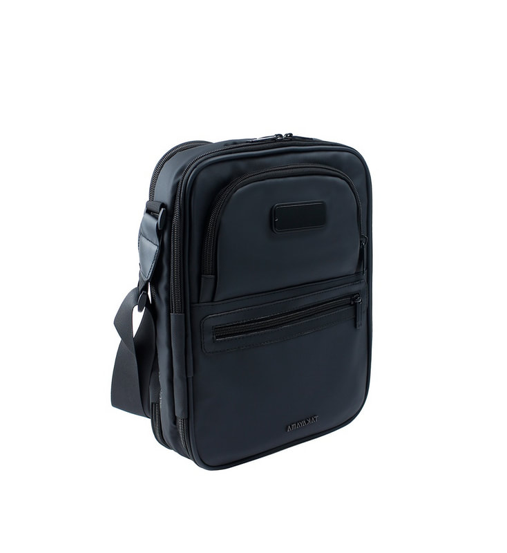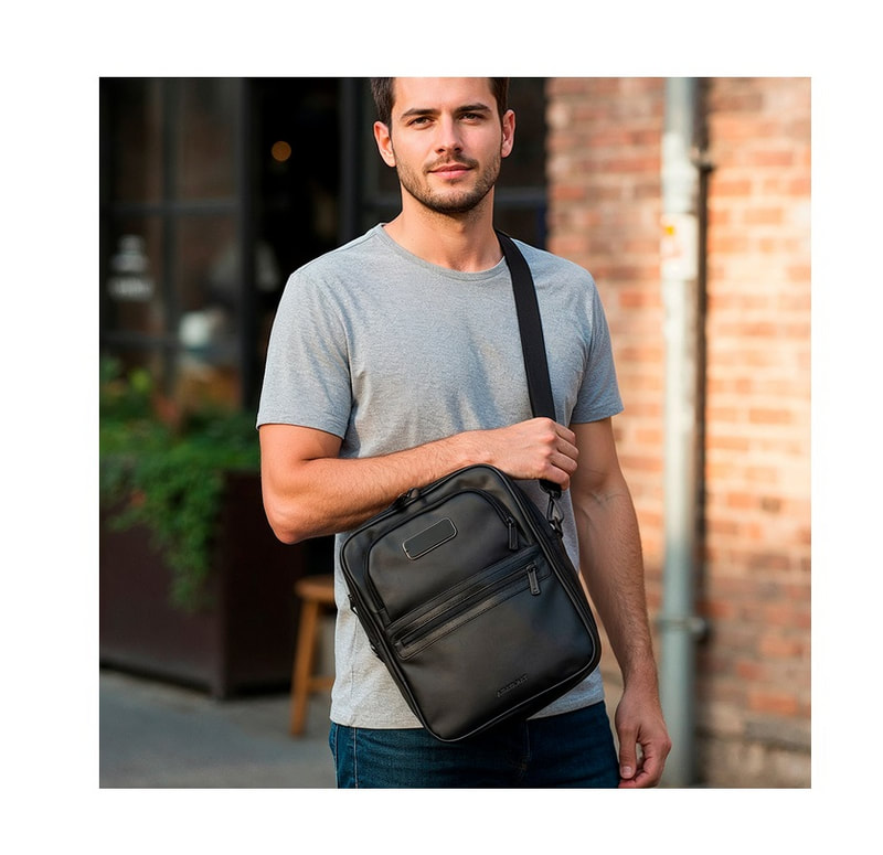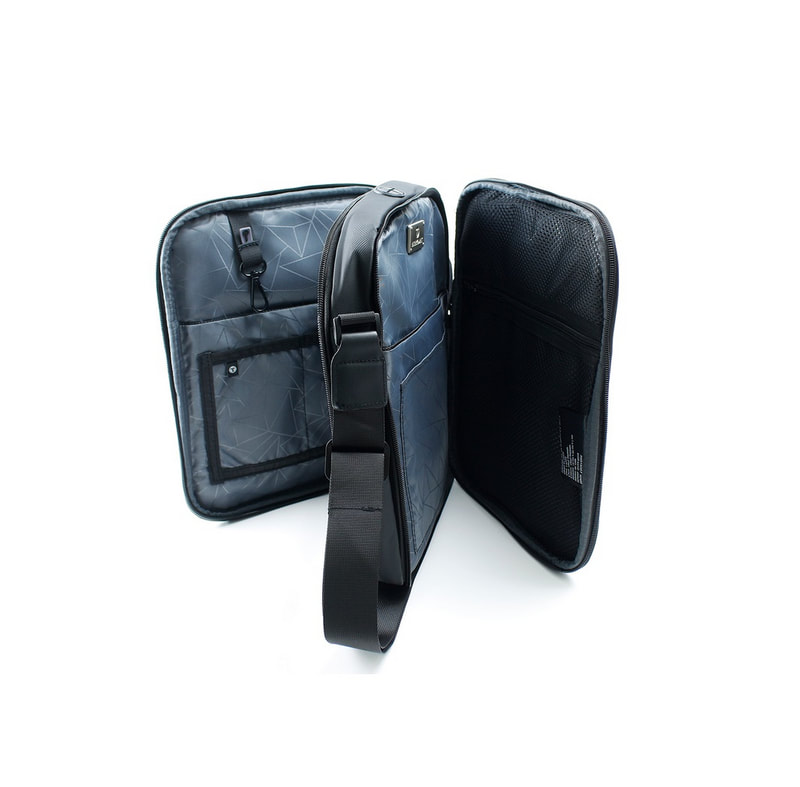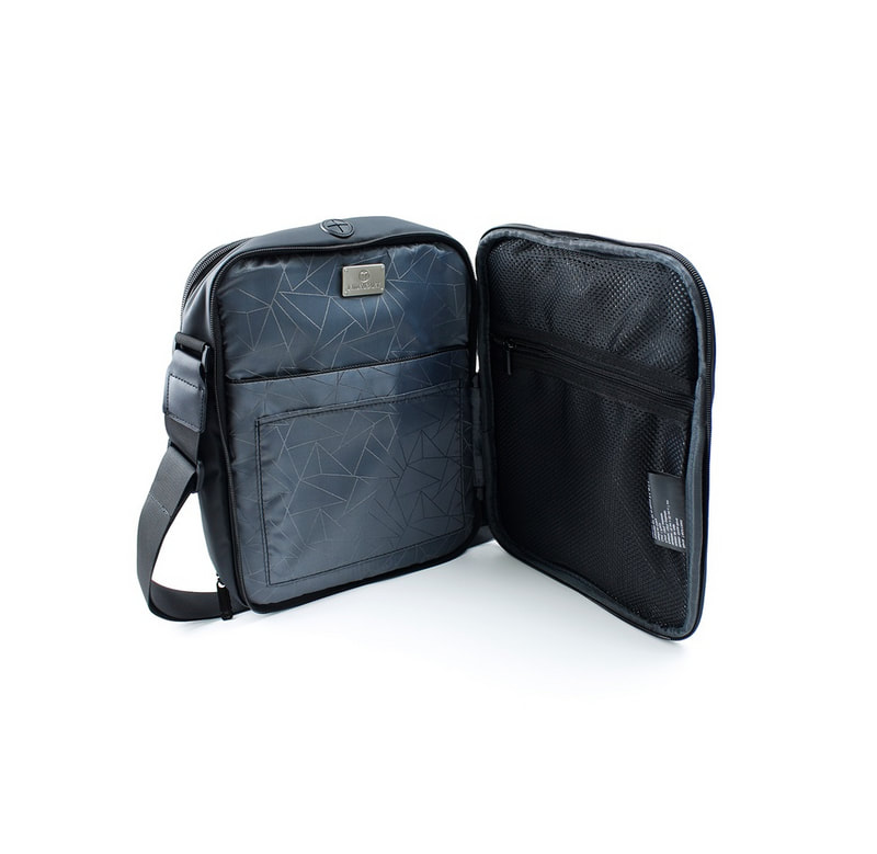 Bolso Cruzado ejecutivo, ideal para viajes y uso cotidiano. Fabricado en poliéster de alta resistencia repelente al agua. Compartimentos principales con doble cierre. Cuenta con bolsillos interiores y espacio para bolígrafos. Correa ajustable y desmontable en uno de sus extremos, para elegir el lado en que se prefiere usar. Parte posterior acochada con textil de malla para mejorar la ventilación. Incluye bolsa individual con cierre hermético. Peso: 0.35 Kg. Capacidad: 4.86 Litros.