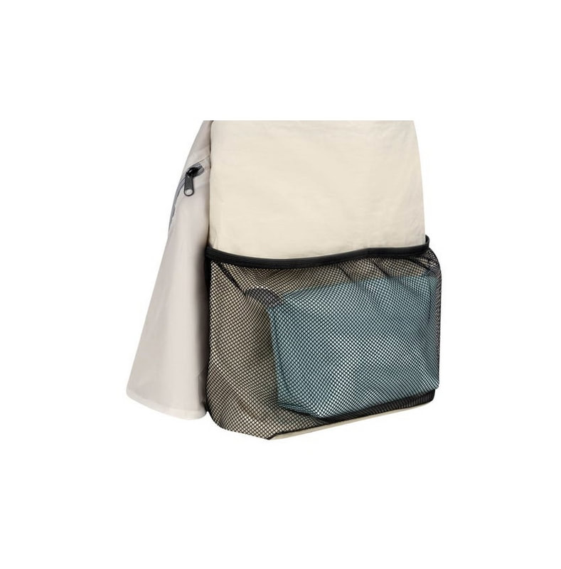principal y pequeña bolsa frontal con cierre. 2 Bolsas laterales de red. Salida para audífonos.