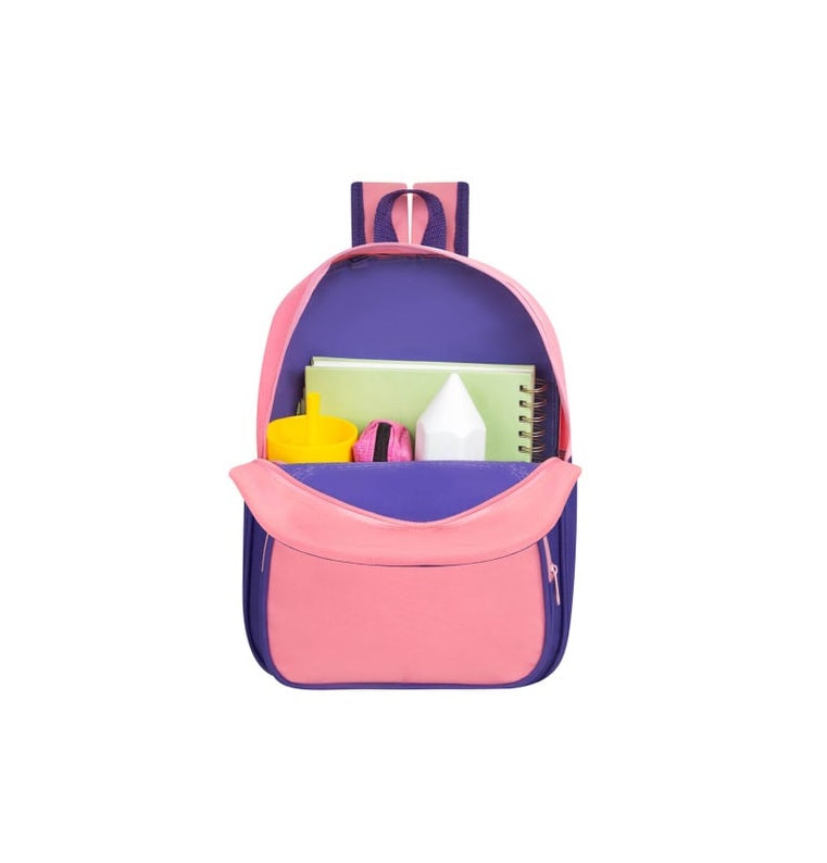 Mini mochila con solapa desmontable con cierre, asa y correas ajustables, cuenta con un compartimento frontal y 2 bolsas laterales de malla con resorte.