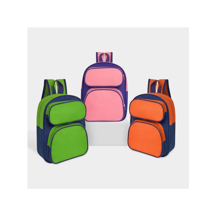 Medidas 40 x 26 x 12 cm aprox. Capacidad 12 litros. Polyester. Mochila con 3 amplios compartimentos acojinados y forrados. Un gran bolsillo en la parte exterior que permite aplicar bordado al frente. El primer compartimento interior tiene un bolsillo de red con cierre y un pequeño bolsillo. El compartimento intermedio tiene un bolsillo de red con cierre y dos divisiones para tableta y laptop. En la espalda una tira que permite engancharla en la manija extensible de las valijas. Correas acojinadas con red que permiten la ventilación. Cierres con herrajes metálicos y hebillas de ajustes metálicas. En la parte superior una manija acojinada.