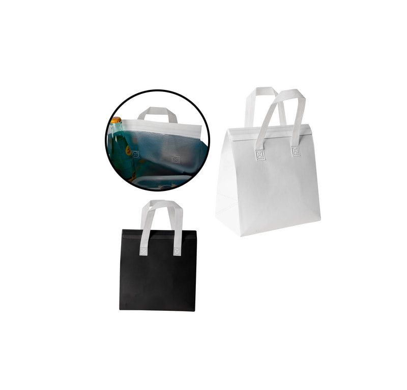 Bolsa ecológica termosellada con asas integradas, fabricada en su totalidad de material non woven de 85 grs. Peso máximo de carga de 11 kgs.