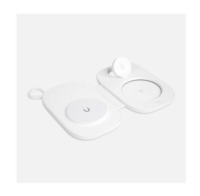 Cargador inalámbrico fabricado en plástico y aluminio plegable 4 en 1 ( carga celular, audífonos y reloj inteligente) con luz nocturna.