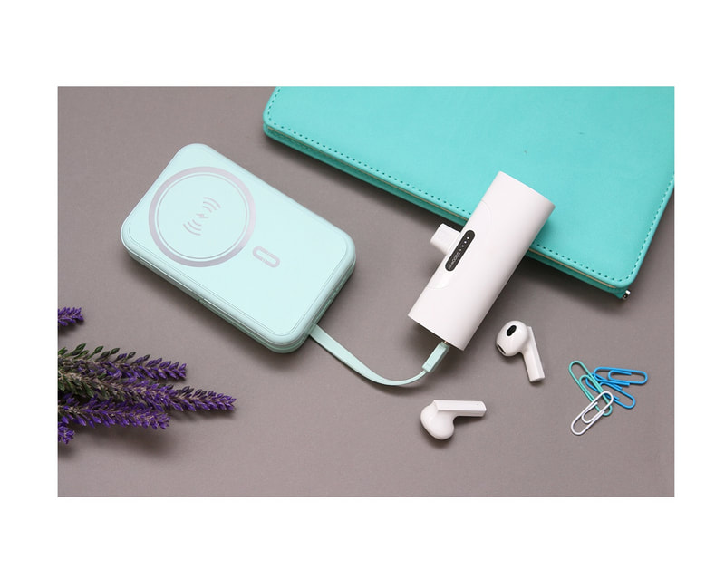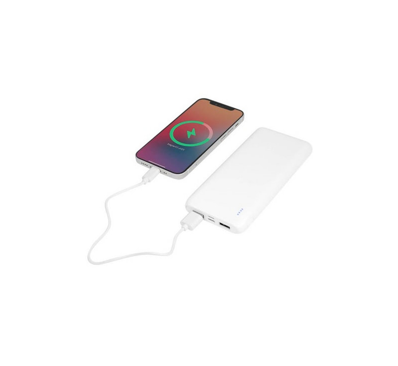 Power bank magnético fabricado en plástico ABS+PC, inalámbrico portátil capacidad de 10,000 mAh, batería externa, carga rápida 20 W, Wireless 15 W, compatible con USB-C.