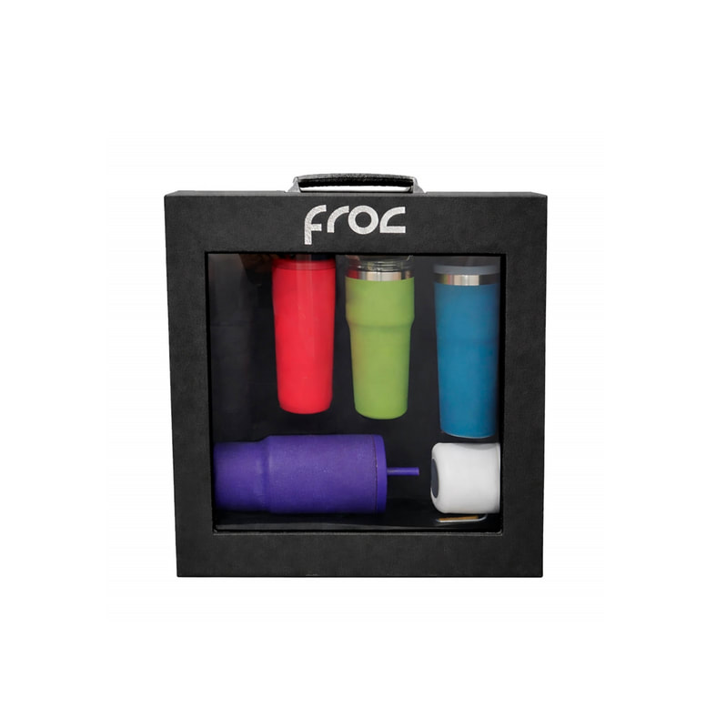 Original set de termo con tapas intercambiables. Incluye termo doble pared, cerrado al vacío. Pared interna y externa de acero inoxidable. Cuerpo con terminado rugoso que permite tener un mejor agarre. Cuenta con una tapa de plástico con doble sistema de rosca, la más amplia permite introducir hielos y otros ingredientes, mientras que su segunda rosca, incluye una boquilla pequeña, que facilita su uso. Su segunda tapa, también con sistema de rosca, incluye una sobre tapa tipo push y ranura especial para popote. Mantiene temperatura caliente 6 hrs y temperatura fría 12 hrs. Capacidad 20 Oz. Incluye popote metálico con boquilla de rubber y caja de regalo.