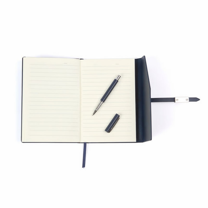 Set de regalo que incluye una libreta de 80 hojas con pasta rígida y solapa magnética, un bolígrafo metálico y un repuesto de tinta adicional. Caja de regalo incluida.