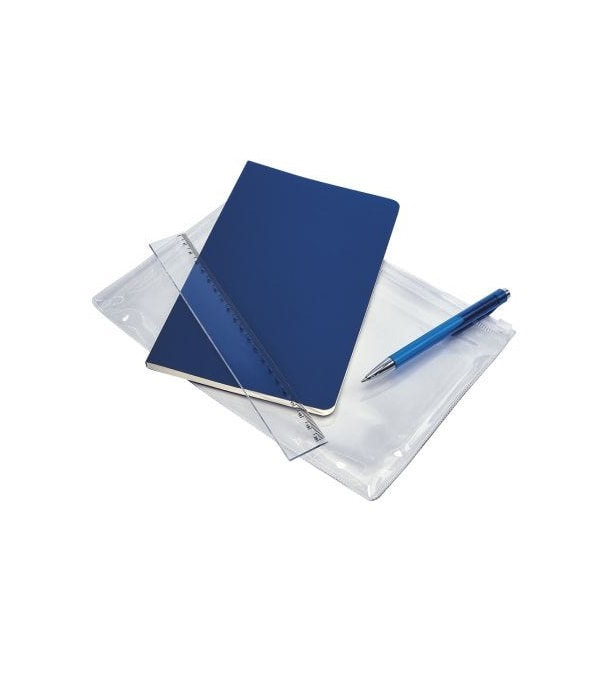 64 Hojas de raya. Incluye un boígrafo, una regla de 20 cm y una bolsa de PVC.