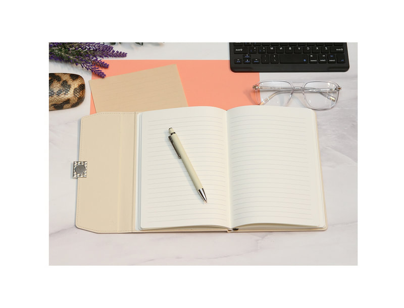Set de libreta de poliuretano (PU) con libreta de 100 hojas rayadas y bolígrafo de plástico con clip metálico a juego. La libreta cuenta con un detalle de metal para cerrarla de manera fácil. Esta elegante carpeta está confeccionada en curpiel de alta calidad, lo que le proporciona un aspecto lujoso y sofisticado, además de una durabilidad excepcional, además viene acompañada de una elegante caja de regalo, lo que la convierte en una excelente opción para obsequiar.