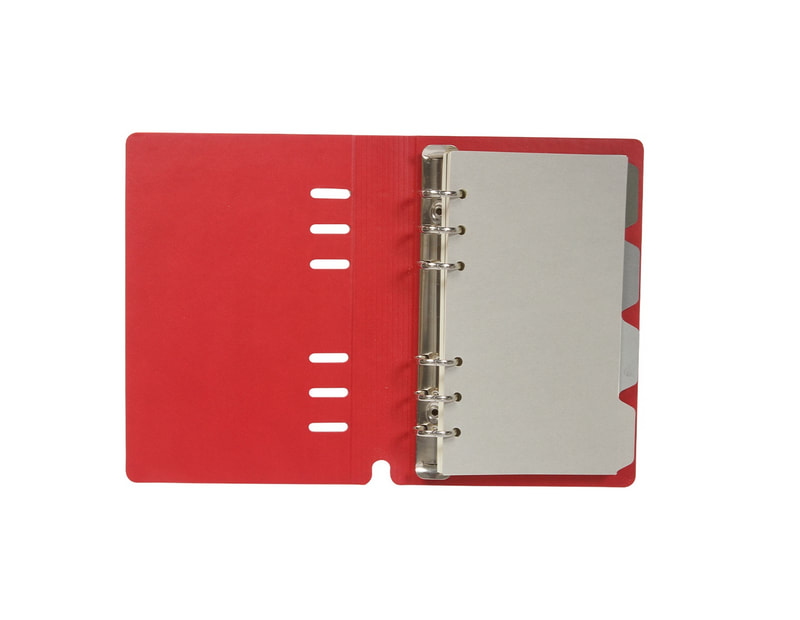 net.057 Carpeta con 6 argollas, con 80 hojas con espacio para tarjetas porta pluma y sistema de cierre con imán.