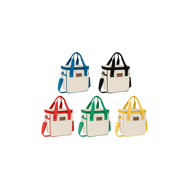 Moderno diseño con interior plastificado, práctico y fácil de limpiar. Cuenta con un bolsillo frontal con cierre, ideal para almacenar accesorios y objetos pequeños de manera segura. Su estilo actual y colores vibrantes, la convierten en la compañera ideal para la escuela, la oficina o cualquier actividad cotidiana. Capacidad 10 latas.