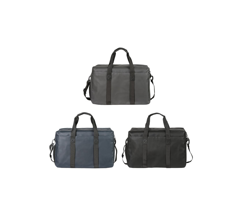 Maleta deportiva compacta fabricada en poliéster con bolsillo frontal, bolsillo lateral de malla, asas superiores, correa para hombro ajustable y desmontable. Costuras 100% resistentes para una máxima durabilidad.