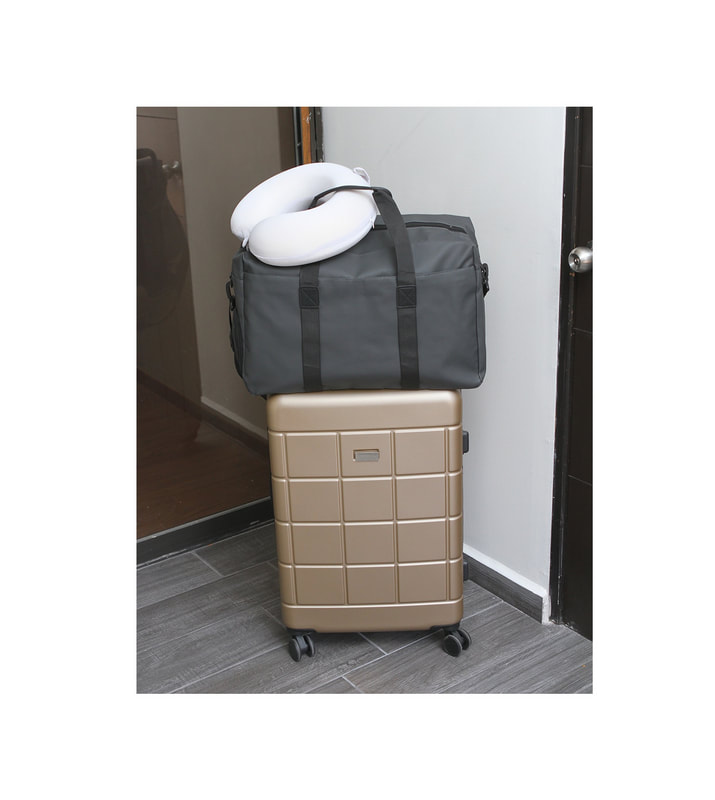 Maleta fabricada en poliéster, con bolsillo para zapatos en colores llamativos, con dos asas superiores y un asa lateral para mejor manejo.