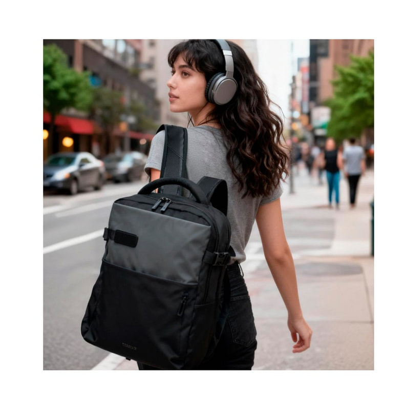 Mochila ideal para viajes, con amplios espacios de almacenamiento. Cuenta con un compartimento acolchado para laptop de hasta 16". Capacidad desplegable para adaptarse a tus necesidades, utiliza cierre para expandir y broches laterales para ajustar a la medida que más te convenga. El compartimento central, incluye un broche cruzado, tipo maleta, para mantener ropa o pertenencias fijas. Dispone de una agarradera superior y una lateral, que permiten trasladarla de manera versátil. Sus asas acolchadas, garantizan comodidad durante todo el día, además, incluye una banda en la parte posterior que facilita su transporte en trolley.