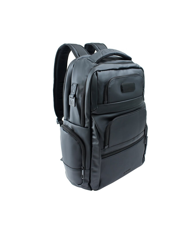 Mochila back pack repelente al agua con un compartimento porta laptop de hasta 15.6 pulgadas y otro compartimento de guarda en la parte interior, cuenta con 2 espacios con cierre para guardar, 2 bolsillos laterales con cierre y en la parte frontal 3 compartimentos con cierre y uno extra para colocar accesorios. en la parte trasera cuenta con respaldo con panel de malla 3D para mayor comodidad, tirantes acolchados con correas ajustables, banda para sujetarse sobre maleta de viaje y asa superior. Incluye placa metálica para grabar.