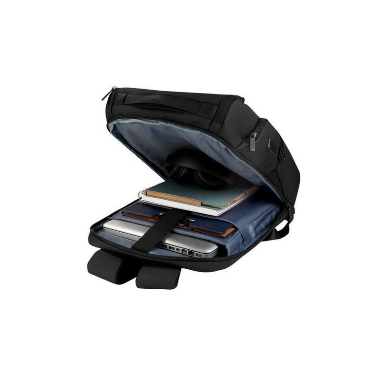 Mochila ejecutiva fabricada con material resistente de alta calidad. Sus acabados refinados y atención al detalle la convierten en un accesorio de alta gama, ideal para ejecutivos que exigen lo mejor en estilo y rendimiento. Su compartimento principal incluye separador acolchado para laptop de hasta 15'' y separador para tablet. En el bolsillo lateral izquierdo, incluye un llavero tipo yoyo con gancho. El bolsillo lateral derecho incluye un puerto USB-C para carga de dispositivos. En la parte inferior, tiene un bolsillo adicional para accesorios pequeños y como complemento adicional, en la parte posterior incluye un bolsillo de seguridad para objetos de valor. Asas acolchadas, ajustables, que brindan soporte y comodidad. Finalmente cuenta con una banda para utilizar en trolley y llevarla fácilmente durante cualquier viaje.