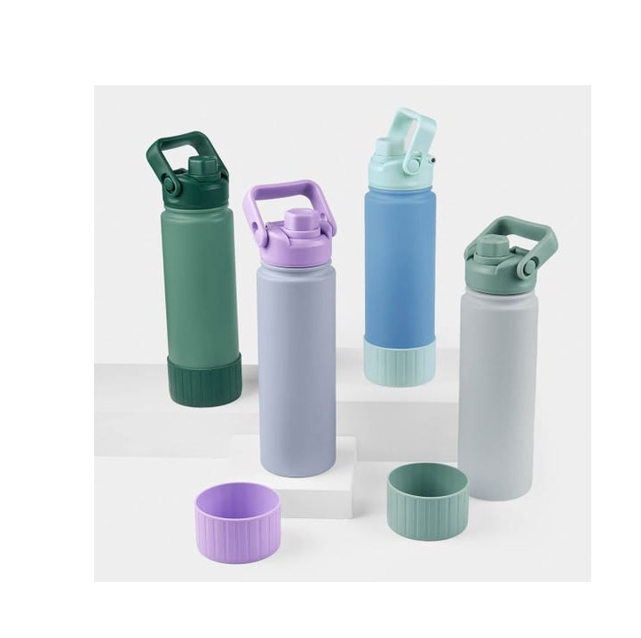 Termo doble pared. Cerrado al vacío. Pared interna y externa de acero inoxidable. Tapa y sobre tapa de plástico con diseño innovador, su cierre de rosca permite un sellado seguro que permite beber fácilmente. Cuenta con un asa plegable para llevarlo a todos lados, ideal para oficina o actividades al aire libre. Incluye una manga de silicón antiderrapante sobre la base, que permite protegerla de golpes y raspones. Mantiene tus bebidas calientes por 12 hrs y frías hasta 16 hrs. Capacidad de 24 Oz. Incluye caja individual.