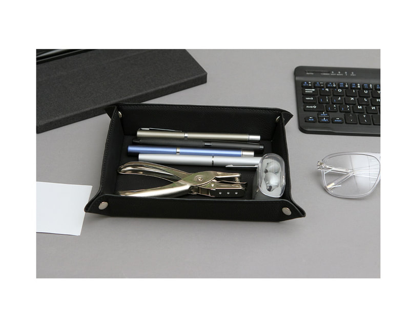 Charola organizadora fabricada en curpiel. Multifuncional y perfecta para mantener todo en orden en diferentes espacios. Diseño innovador, materiales duraderos y fácil de limpiar.