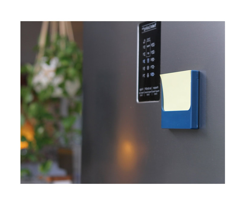 Organizador de escritorio fabricado en poliestireno (PS). Compuesto por porta lápices y notas adhesivas.
