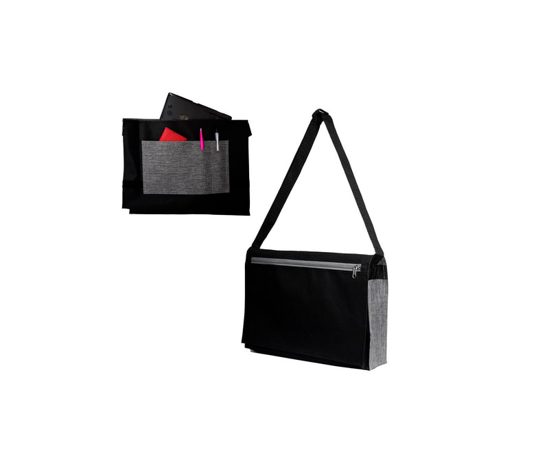 cam2595 Maletín con correa larga ajustable. Cuenta con una bolsa lateral de malla y bolsa al exterior con cierre.Haz clic aquí para editar.