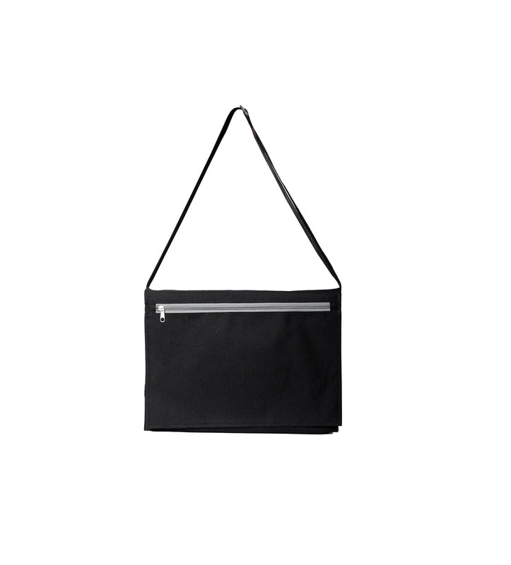 Bolsa porta documentos de 3 compartimentos. Compartimento principal, 2 compartimentos frontales con zipper y correa ajustable.