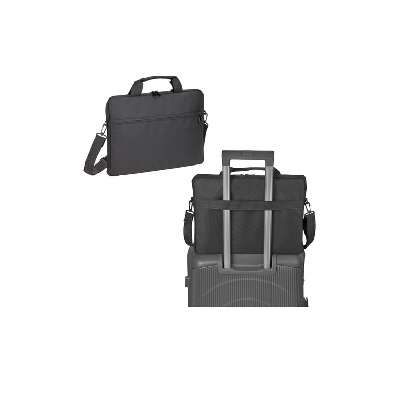 Portafolio para laptop de 15". Al interior cuenta con organizador que permite mantener documentos, bolígrafos y otros objetos pequeños. Bolsa principal y bolsillo frontal con cierre. Incluye aditamento trasero para colocar en trolley, correa ajustable removible para hombro y asas superiores. Ideal para el trabajo, los viajes de negocios.