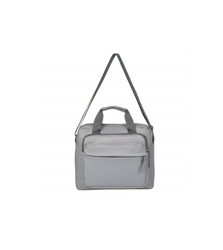 Bolso portafolio. Su compartimento principal incluye un separador acolchado para laptop de hasta 15''. contiene un bolsillo frontal y uno al reverso con cierre, para asegurar tus pertenencias. Sus bolsillos laterales de acceso rápido, son ideales para pequeños accesorios. Incluye un asa para hombro con correa ajustable y removible, sus broches metálicos permiten retirarla facilmente. En la parte posterior cuenta con banda que facilita su transporte en trolley.