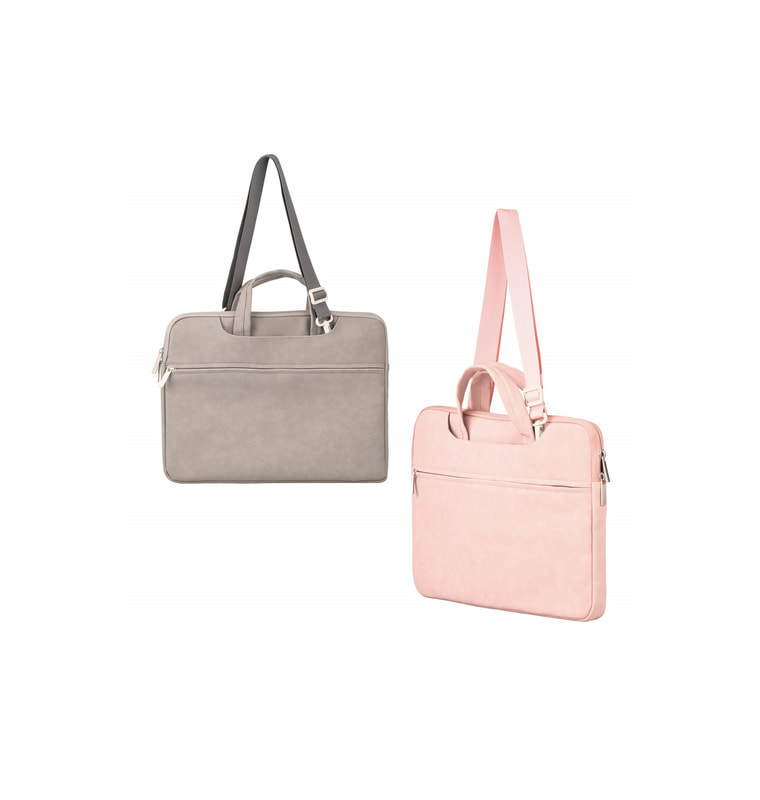 Funda para laptop, fabricada en fieltro, con un cierre de velcro, y un detalle de curpiel que le da un toque de estilo y personalidad, con un doble compartimento, lo que te permite guardar y organizar no solo tu laptop, sino también otros accesorios esenciales.