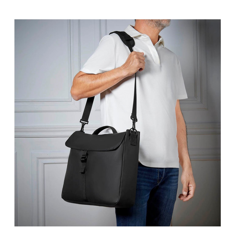 Elegancia y funcionalidad se unen en este portafolio. Con un compartimiento principal seguro, cerrado por un gancho metálico, ofrece espacio para una laptop de hasta 15". Su asa para hombro, con almohadilla integrada brinda una mayor comodidad al transportarla. Esta mochila es la combinación perfecta de estilo y practicidad para el profesional moderno.