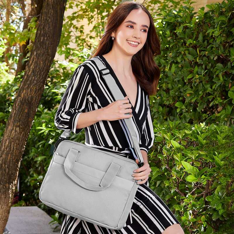 Portafolios bi-tono fabricado en poliéster, con correa de hombro ajustable, bolsillo frontal y asas superiores. Increíble opción para transportar de manera segura tu laptop.