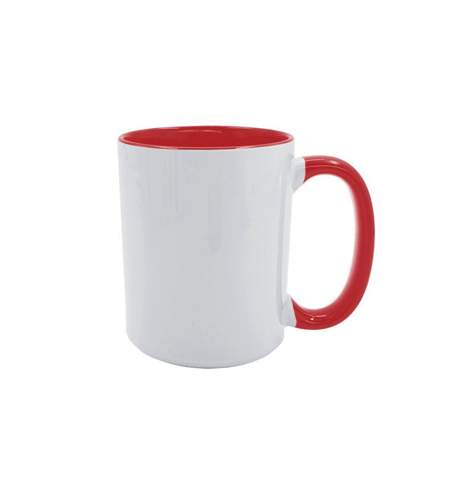Tarro bicolor blanco para sublimación con asa e interior en color diferente. CAP. 15 OZ. Venta en múltiplos de 12.